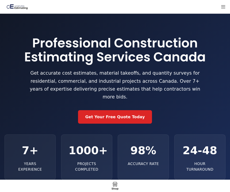 Construction Estimating Inc. is Canada’s leading provider of professional construction estimating services, delivering unparalleled accuracy and speed to contractors, developers, and architects across the nation. With more than seven years of industry experience, our team of seasoned estimators leverages cutting‑edge technology and up‑to‑date market data to produce detailed cost projections that help clients win bids and control budgets. From single‑family homes to multi‑million‑dollar commercial developments, we offer precision and reliability in every estimate.