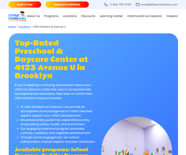 The inspiring journey of Little Scholars began with our founders'' clear vision to support parents in guiding their children towards happy, fulfilled lives. Little Scholars is a beacon of quality daycare services. Our principal goal is to empower children and families through programs designed to spark independence, nurture growth, and stimulate development, all within an environment that radiates warmth and inclusivity, fostering a deep sense of belonging. At Little Scholars, we believe in educating the ''whole child'', cultivating their lifelong passion for learning. As they grow older and progress into public or private school, the foundation laid at Little Scholars Daycare continues to support them through their educational journey. That''s the Little Scholars difference creating a nurturing haven where every child can bloom, bolstered by the power of knowledge and the warmth of our caring community. Little Scholars accept children from 6 weeks up to 5y.o.
