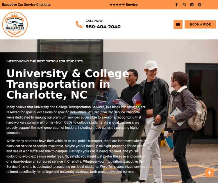 Many believe that University and College Transportation Services, like black car services, are reserved for special occasions or specific individuals. At Executive Car Service Charlotte, we’re dedicated to making our premium services accessible to everyone, recognizing that hard workers come in all forms—from CEOs to college students. As a local business, we proudly support the next generation of leaders, including those currently pursuing higher education. While many students have their vehicles or use public transport, there are instances where a black car service becomes invaluable. Maybe you’ve been up all night preparing for an exam and desire a chauffeured ride to campus. Perhaps your car is being repaired, and you’re looking to avoid excessive rental fees. Or, simply, you might just prefer the ease and comfort of a door-to-door chauffeured service in Charlotte. Whatever your motivation, Executive Car Service Charlotte is dedicated to assisting our local students. We offer a specialized service tailored specifically for college and university students, both prospective and current.