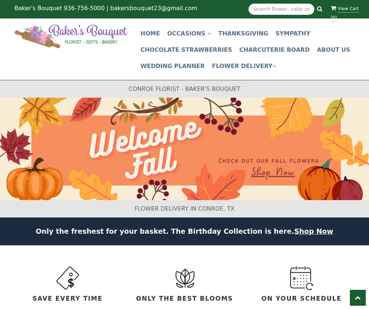 Baker’s Bouquet is your local florist in Conroe TX, proudly serving the community with exquisite floral arrangements and exceptional customer care. As a leading flower shop in Conroe, we are known for our creativity, quality, and dedication to crafting floral designs that perfectly express life’s most meaningful moments. Whether you’re celebrating a birthday, anniversary, wedding, or any special occasion, our talented team creates custom arrangements that leave a lasting impression. At Baker’s Bouquet, we believe that every bouquet tells a story. Our florists carefully hand-select the freshest blooms to design stunning arrangements that reflect your emotions—whether it’s love, gratitude, sympathy, or celebration. With reliable flower delivery in Conroe TX, we ensure your flowers arrive fresh, on time, and beautifully presented. Nearby delivery areas Montgomery, Willis, The Woodlands, Conroe