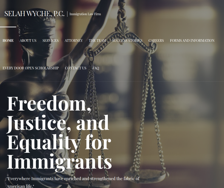 At Selah Wyche, P.C., we view every case as a chance to strengthen the fabric of American life. Our mission is to create a safe haven for future generations, offering legal solutions that promote freedom, equality, and dignity. With a proven track record of success and a reputation for kindness, fairness, and respect, we invite you to experience immigration law practiced with heart and expertise.