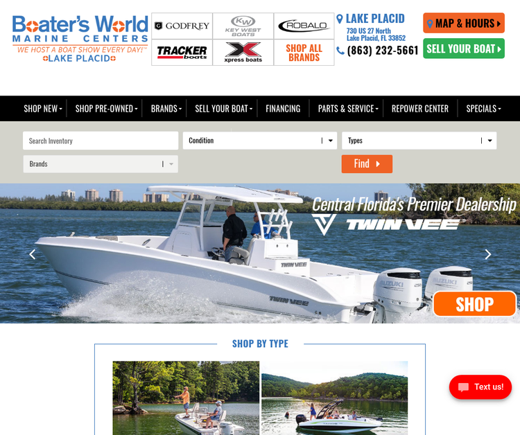 Boater's World is an authorized outboard and boat dealership serving the Albany, Georgia area. We are proud to carry a large selection of new and pre-owned boats from the top manufacturers. Our friendly and knowledgeable sales, financing, service and parts departments are prepared to make sure your experience is outstanding, from assisting while you're making your choice to ongoing maintenance and customization. At Boater's World, we value the opportunity to create a long term relationship with our customers, and we do that by giving you the best customer service.