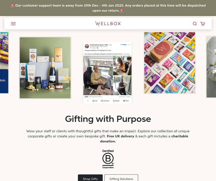 Food, Drink, Wellbeing and Branded Gifts with a charitable donation. Spread the love to your staff, clients or prospects with personalised gift boxes delivered straight to their door.