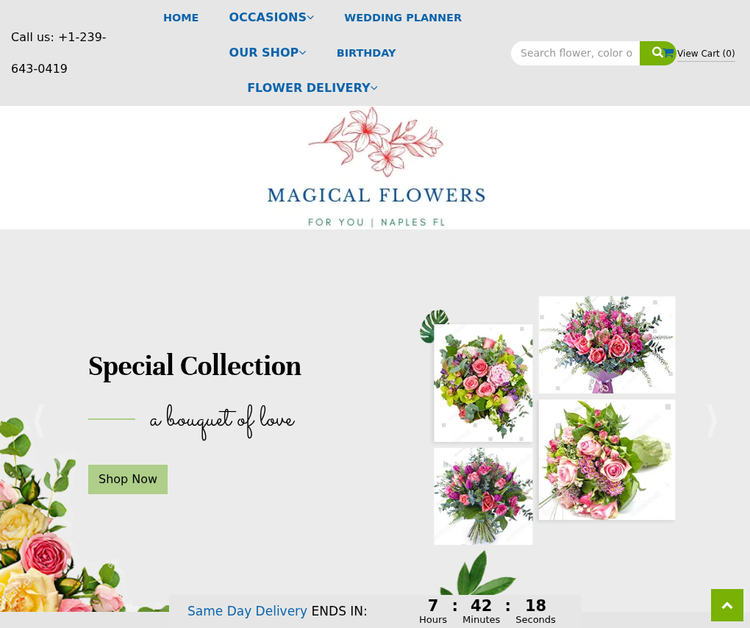 Magic Flowers is a premier florist in Naples, FL, offering exquisite floral arrangements and exceptional customer service. As a trusted flower shop in Naples, FL, we specialize in creating designs that reflect elegance, care, and creativity. From timeless roses and vibrant plants to gourmet gift baskets, dish gardens, and exotic blooms sourced both locally and globally, every piece is crafted with attention to detail and quality. We make sending flowers simple and stress-free with easy online ordering or personal assistance at +1-239-643-0419. For your convenience, we provide same-day flower delivery in Naples, FL on local orders placed before noon (ET). Our team ensures every bouquet or gift is delivered with precision and care, turning special moments into unforgettable memories. When you’re looking for the finest flowers and reliable service, trust Magic Flowers—your go-to flower shop in Naples, FL for beauty, quality, and satisfaction. Nearby Delivery areas - Bonita Springs, Cypress Lake, Golden Gate, Marco Island, Naples Park, San Carlos Park, Villas