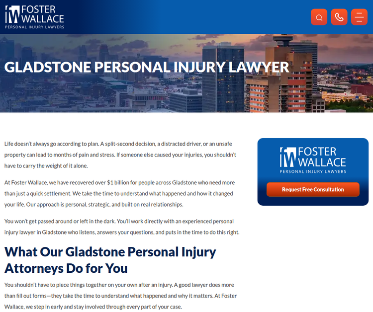 At Foster Wallace, we are a dedicated team of personal injury attorneys serving Gladstone and the greater Kansas City area. Our mission is to secure justice and substantial compensation for victims of accidents, negligence, and wrongful acts. With more than a decade of experience and a proven history of recovering over $1 billion for clients, we bring expertise and compassion to every case.