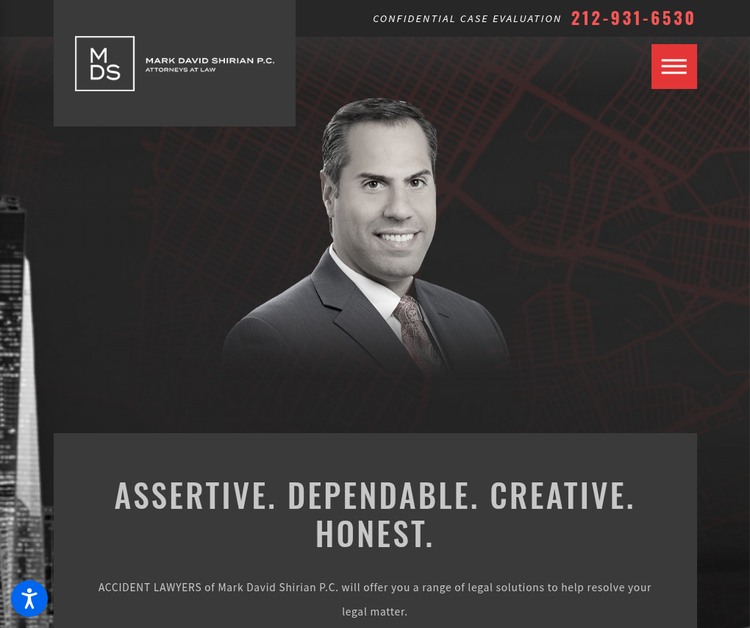 In the heart of New York, Mark David Shirian, P.C. stands as a dedicated advocate for those injured due to negligence. Since 2016, this premier firm has focused on personal injury law, including motor vehicle accidents, slip and fall incidents, medical malpractice, and employment law disputes. The firm's experienced New York City attorneys are committed to fighting for their clients' rights and have a proven track record of recovering millions in damages. Contact the team at Mark David Shirian, P.C. today.