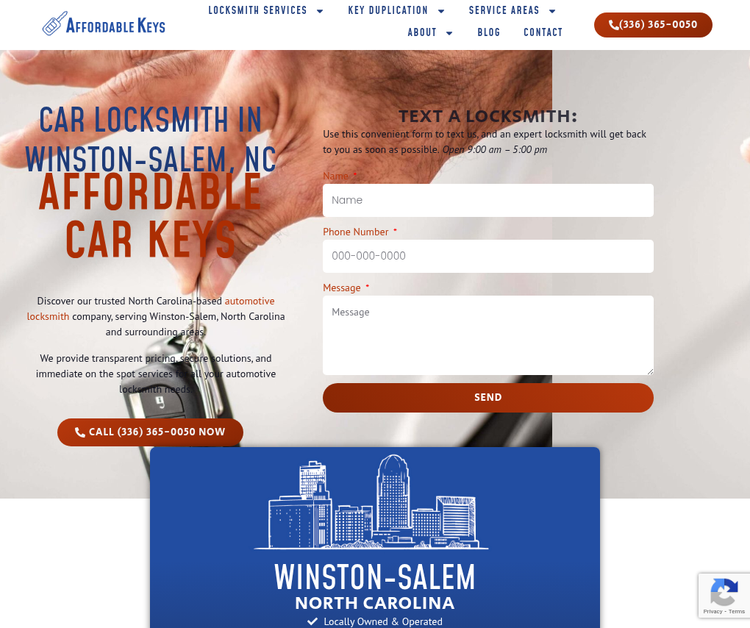 Affordable Car Keys is a professional car locksmith serving Winston-Salem, Clemmons, Lewisville, NC & nearby areas. We specialize in car key replacement, car key duplication, car lockout service, and general auto locksmith services, providing fast, affordable solutions with transparent, upfront pricing. As an experienced mobile and car key locksmith, we offer a convenient mobile service to cut, program & replace lost Toyota, Honda, Ford car keys, duplicate transponder keys, smart keys & proximity keys. We also unlock cars when keys are lost or locked inside. Our skilled locksmiths use the latest key cutting equipment. Call now for a fast mobile locksmith able to duplicate or replace your car key or unlock car doors for all makes & models!
