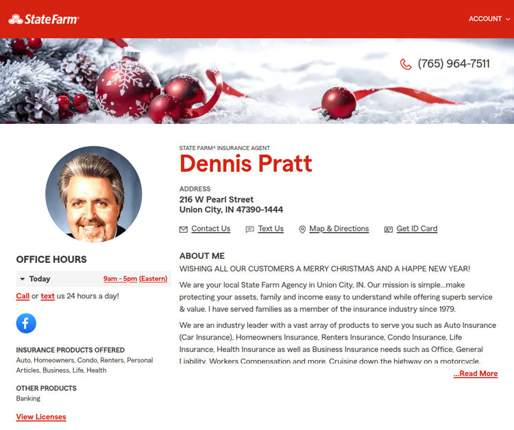 Dennis Pratt State Farm is your trusted insurance partner in Union City, Indiana. With over four decades of experience since 1979, our dedicated agent has guided families through life’s unpredictable moments, ensuring protection for homes, cars, and loved ones. Our local presence means we understand the unique risks of our community and can tailor solutions that fit your needs and budget.