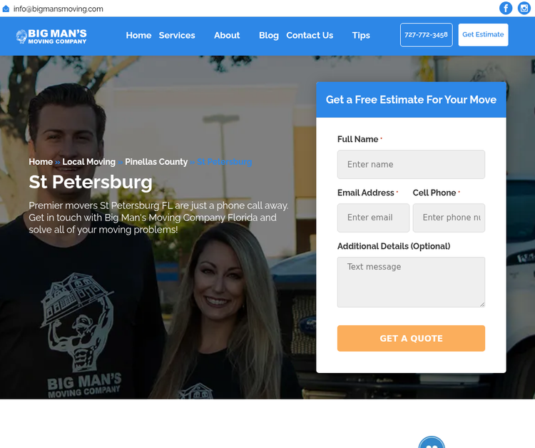 For a fast, safe, and efficient move, trust Big Man’s Moving Company. Our professional Movers St Petersburg FL specialize in local moves, ensuring that everything from packing to unpacking is handled with care and precision. As a reliable Moving Company St Petersburg FL, we prioritize the safety of your belongings while providing fast and friendly service.