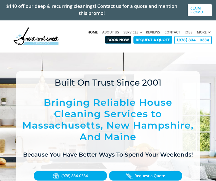 Neat and sweet cleaning provides top-quality residential and commercial cleaning services for homes, vacation rentals, apartments, apartment associations, offices, and commercial buildings. Serving Central and Northeast Massachusetts, we offer deep cleaning, recurring cleaning (weekly, biweekly, or monthly), move-in/out cleaning, and office or light commercial cleaning. You can always rely on Neat and sweet cleaning for exceptional results at a fair price. Contact us now!