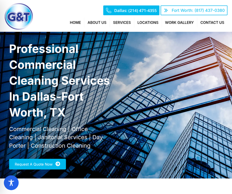 G&T Corporate Cleaning Services in Dallas-Fort Worth provides reliable commercial, office, janitorial, and construction cleaning. From downtown office towers and retail centers to schools, healthcare facilities, and new construction sites, our experienced team ensures every workplace stays polished, clean, and professional. Contact us for more information!
