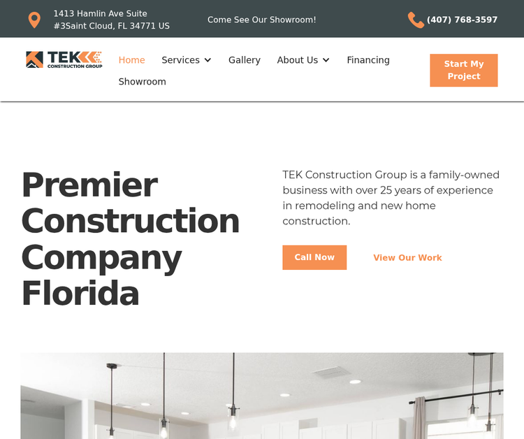 TEK Construction Group is a family-owned and operated business with over 25 years of experience in remodeling, additions, and new construction. Based in Saint Cloud, FL, we provide services tailored to meet the needs of homeowners in Windermere, Winter Park, and Winter Garden. Specializing in kitchen remodels and bathroom remodels, custom home additions, and roofing, we deliver exceptional craftsmanship and customer service. From design to execution, our team ensures a seamless experience, helping homeowners transform their living spaces into luxurious and functional environments.