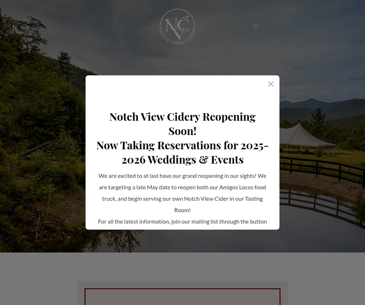 Notch View Cidery, in the breathtaking White Mountains of North Woodstock, NH, is the premier destination for weddings, corporate retreats & special events. Just 2 hours from Boston, we offer rustic elegance & stunning views. Our venue features versatile event spaces, exceptional on-site catering & food trucks, & artisanal hard ciders. With a dedicated team, charming nearby towns like Lincoln & Waterville, & some scenic on-site lodging, Notch View Cidery blends natural beauty & convenience.