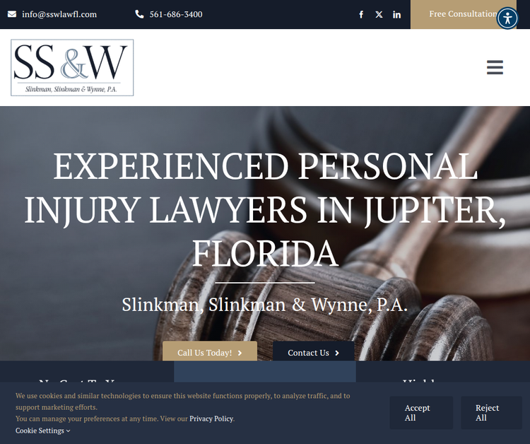 The law office of Slinkman, Slinkman & Wynne, located in Jupiter, practices law in South Florida. Devoted to protecting & seeking justice for families who have been injured in an accident for 50+ years.