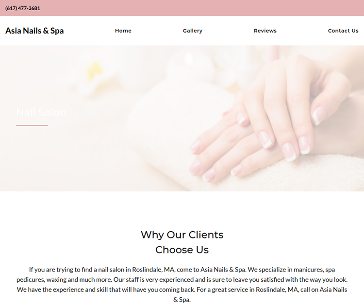 Asia Nails & Spa has proudly served the Roslindale community for over a decade, earning a reputation for exceptional nail care and a welcoming, spa‑style environment. Our salon blends contemporary techniques with personalized attention, ensuring each client walks away feeling refreshed and confident in their appearance.