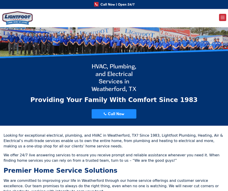 Lightfoot Plumbing, Heating, Air & Electrical has been serving Texas area for more than 40 years. We offer a comprehensive range of plumbing, air conditioning, heating, electrical and indoor air quality services, and pride ourselves on providing our customers with top-quality service and customer care.