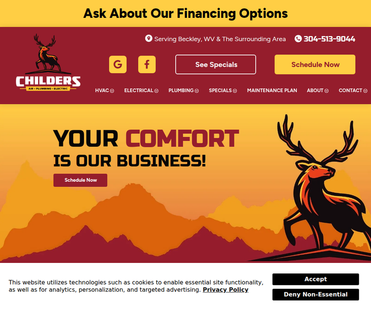 Founded in 1951 as a small local family business, Childers Air Plumbing & Electric has since expanded our sales and services offerings and now employs nearly four dozen local sales, installation, and repair technicians thanks to continued support and loyalty from our local community. We provide HVAC repair, HVAC installation, HVAC maintenance, indoor air quality services as well as electrical and plumbing services throughout Beckley, WV and the surrounding area.