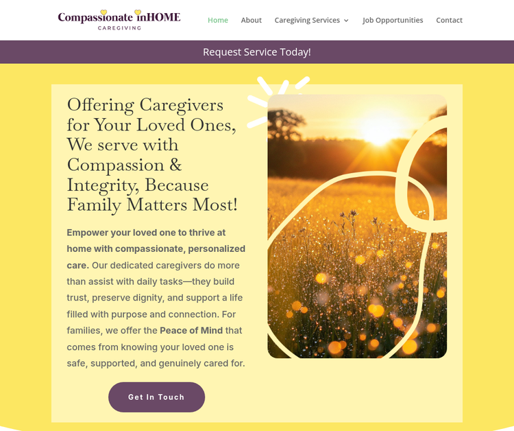 Elevating Eldercare: Your Trusted inHOME Caregiving SolutionCompassionate In-Home Caregiving is your trusted partner in providing exceptional and personalized care for your loved ones within the comfort of their homes. We understand that each individual has unique needs, and our mission is to deliver compassionate, professional, and reliable in-home care tailored to your family''s requirements. Our Services: Personalized Care Plans, Compassionate Caregivers, Medication Administration, and more.