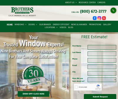 Brothers Home Improvement offers custom, energy efficient, double pane, vinyl window and exterior glass door replacements for residential properties. Including Picture Windows, Single and Double Hung, Vertical Sliders, Bays, Bows, Garden Windows, Sliding Patio, and French Doors. Brothers is a family owned and operated business serving Reno, Sparks & Carson City Areas. Founded in 1994 BHI consists of Nine Brothers and Sisters always striving for their customer''s complete satisfaction.