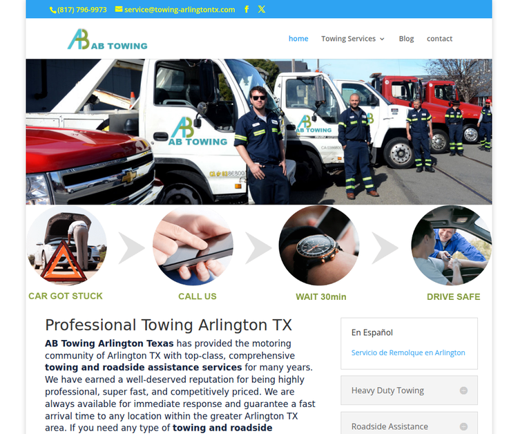 At AB Towing Arlington TX Company, We offer 24/7 towing & roadside assistance services, Auto wrecker, tow truck services, car lockout solutions and much more. We are a highly trained & specialists towing company in Arlington Texas. Call us today at (817) 796-9973 and get the most effective towing solutions in Arlington, Texas and bordering areas.