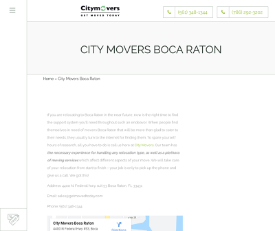If you are relocating to Boca Raton in the near future, now is the right time to find the support system you’ll need throughout such an endeavor. When people find themselves in need of movers Boca Raton that will be more than glad to cater to their needs, they usually turn to the Internet for finding them. To spare yourself hours of research, all you have to do is call us here at City Movers. Our team has the necessary experience for handling any relocation type, as well as a plethora of moving services which affect different aspects of your move. We will take care of your relocation from start to finish – your job is only to pick up the phone and give us a call. We got this!