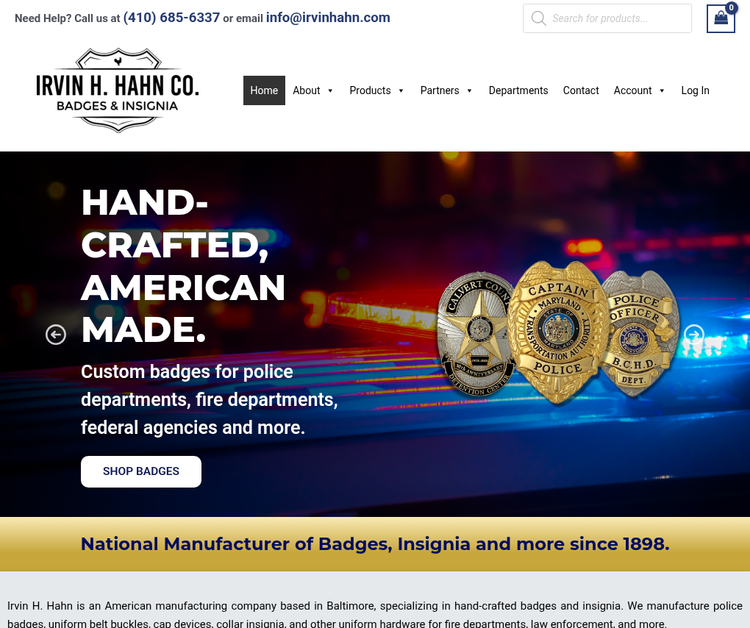 Irvin H. Hahn is a premier American manufacturer specializing in handcrafted public safety badges, buckles, cap devices, collar insignia, and more.