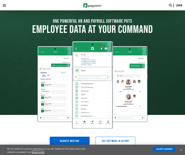Paycom''s comprehensive payroll and HR technology allows businesses of all sizes to manage their entire employment life cycle, from recruitment to retirement. With our industry-leading single software, our clients access all of their tools in one place, creating a seamless and accurate user experience. Our self-service mobile app allows employees to enter, update and manage their own information, reducing data errors systemwide.