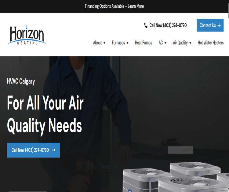 Since 1988, Horizon Heating Ltd. has been providing affordable indoor air quality services and AC installation to Calgary and surrounding area. Our AC & Calgary furnace repair service is conducted by professional maintenance technicians, all qualified to provide AC installation, air conditioning repair, and furnace duct cleaning, covering all makes and models. We expertly install new home HVAC systems, and work together with clients to create custom renovation solutions for all residential projects. Call us today at 403-274-0790. Phone: (403) 274-0790 Address: 28 – 666 Goddard Avenue NE Calgary, AB T2K 5X3 Website: https://horizonheating.ca/ Services: Furnace Repair, Furnace Replacement, Furnace Tune-Up, Furnace Cleaning & Maintenance, Carrier Furnace Installation & Repair, Heat Pump Services, AC Repair, AC Installation, Air Purifiers & Filtration, Humidifiers, Thermostats, HRV Installation, Duct Cleaning, Hot Water Heater Services, Heat Pump Installation & Repair. Business Hours: Monday – Friday 8:00 AM – 4:30 PM.