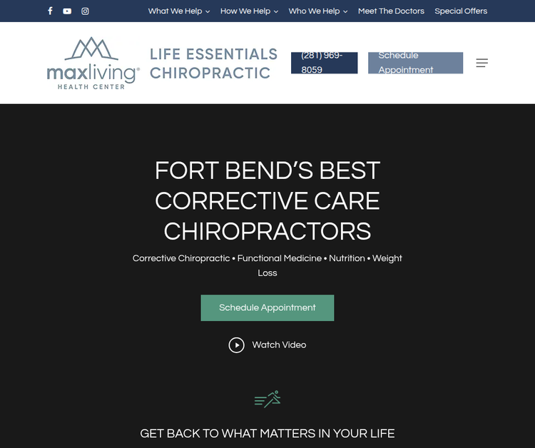 At Life Essentials Chiropractic in Missouri City, TX, we focus on correcting root causes in your body and in your lifestyle so you can feel great now and maintain a full life without limits. The body is designed with an incredible intelligence. It has the ability to regulate and heal itself throughout a long, healthy lifespan. Robust health requires the right care to remove the interferences and the right environment to function and heal the way it is designed.