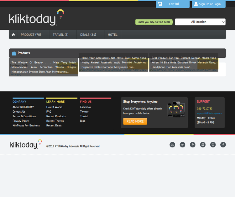 KlikToday is Indonesia’s premier destination for daily special offers, delivering a curated selection of deals directly to your inbox and mobile device. With a user‑friendly platform that spans beauty, fashion, home décor, children’s products, creative gadgets, and entertainment items, KlikToday brings the convenience of online shopping and the thrill of savings into one seamless experience.