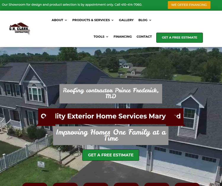 G.H. Clark Contractors is a family owned and operated business, specializing in roofing, siding, windows, doors, gutters, decks, and porches. We are based in Prince Frederick, Maryland and serve Calvert county, St. Mary´s county, Charles county, Anne Arundel county, King George county, and surrounding areas. G.H. Clark was started by Gil Clark, Jr in 1990, and to this day, has served over three thousand happy customers.