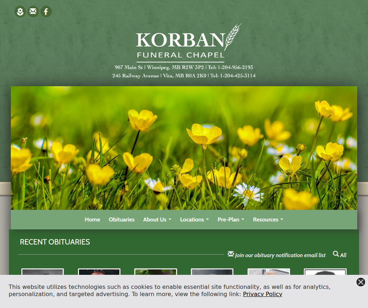 Korban Funeral Chapel has actually been offering the Winnipeg communities since 1977 with personalized, affordable, and dignified funeral services. We are a small, family-operated funeral home offering affordable funeral service, cremation and burial services. Because we are small, every single individual that walks through our doors is treated like family. Korban Chapel also has a well-appointed reception facility for gatherings following the funeral. We are available 24 hr a day and 7 days a week and offer many pre-arrangement options.