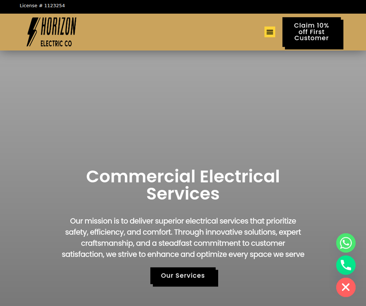 Horizon Electric Co is the leading electrician in Livermore, CA and the surrounding area. We proudly offer residential electric services, emergency electrical repair, commercial electric services, security system installation, and outdoor lighting. Our licensed electricians are dedicated to delivering safe, reliable, and efficient electrical solutions tailored to your needs. Whether you're upgrading your home’s lighting or need fast emergency repairs, we ensure quality workmanship every step of the way. Contact us for all your electrical needs!
