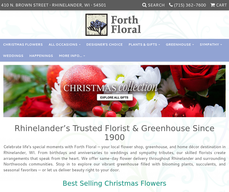 Since 1900, Forth Floral & Greenhouses has been the heart of Rhinelander’s floral community, delivering beauty and comfort for generations. Our skilled florists blend classic design with fresh creativity, making every arrangement a personal expression of love, celebration, or remembrance.