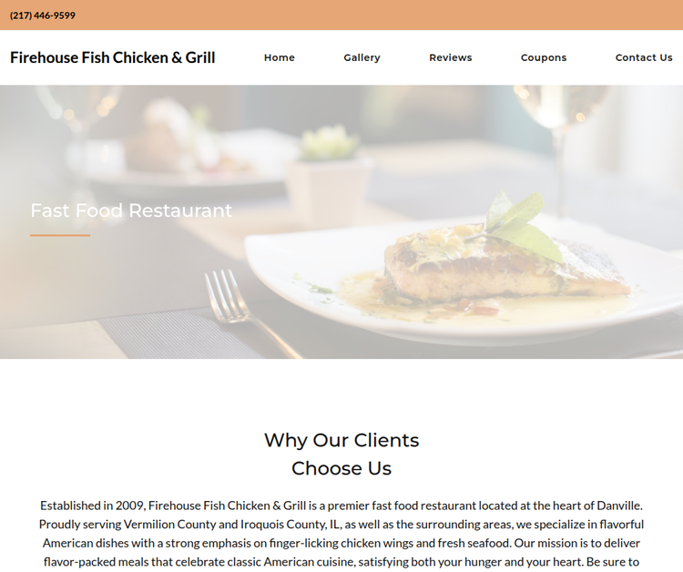 Firehouse Fish Chicken & Grill opened its doors in 2009 and has quickly become a cornerstone of Danville's vibrant food scene. Nestled in the heart of the city at 610 E Main St, the restaurant proudly serves the surrounding Vermilion and Iroquois Counties. With a menu that celebrates classic American fare, each plate is crafted to deliver bold, unforgettable flavors. From hand-tossed fries to freshly prepared salads, every item is made with quality ingredients and served with a smile. Whether you're looking for a quick bite or a leisurely lunch, Firehouse offers a welcoming atmosphere that feels like home for locals and visitors alike.