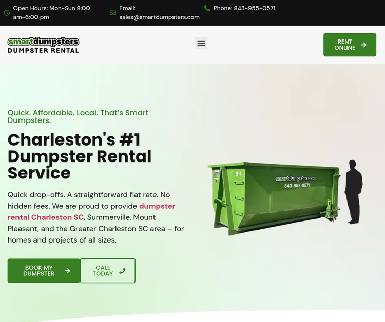 Smart Dumpsters is the trusted choice for affordable and stress-free dumpster rentals in Charleston, SC, and nearby communities. From home renovations and yard cleanups to construction and commercial projects, we provide a range of dumpster sizes with quick delivery and prompt pickup. As a locally owned company, we offer transparent pricing, dependable service, and friendly support throughout your project. With Smart Dumpsters, waste removal becomes simple, efficient, and cost-effective. Book online anytime for convenient dumpster rental solutions.
