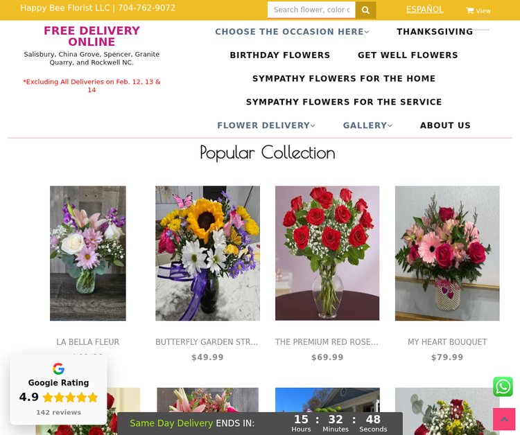 Happy Bee Florist LLC ensures your flowers add beauty, elegance, and emotion to every moment. From stunning bridal bouquets and elegant centerpieces to charming seasonal arrangements, our team uses only the freshest flowers and lush greenery to create designs that perfectly reflect your vision. Whether you’re planning a grand celebration or an intimate gathering, With reliable and prompt Flower Delivery in Salisbury NC, we make it simple to share love, joy, and celebration across the community. Local delivery areas includes China Grove, cleveland, East Spencer, Franklin, Granite Quarry, Lexington, Rockwell, Salisbury, Spencer, Westcliff, Woodbine