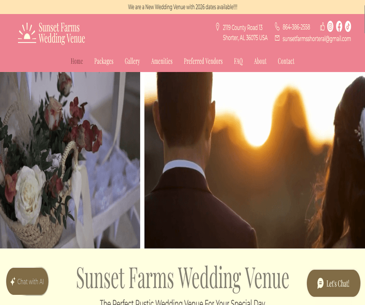 With Southern hospitality at every turn, Sunset Farms invites you to experience an event that feels both timeless and truly yours. Phone: 864-386-2558