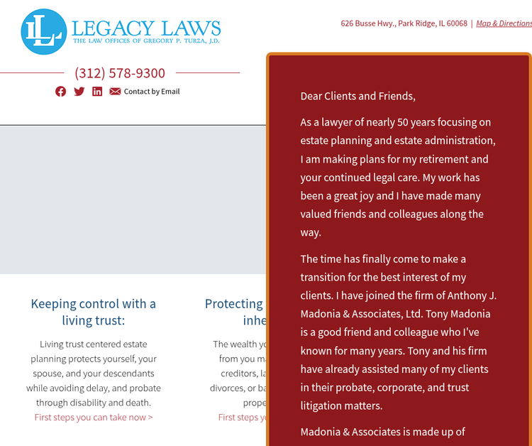 Recognizing the evolving needs of our clients, Legacy Laws proudly partnered with Anthony J. Madonia & Associates, Ltd. in 2023, forging a unified practice that blends over fifty years of probate expertise with a CPA-backed, comprehensive business advisory framework. This alliance enhances our service portfolio, enabling us to advise on corporate formation, mergers, tax planning, real estate transactions, and more. Clients now benefit from a single, trusted source for all legal and financial matters, ensuring consistency, cost efficiency, and unparalleled strategic insight. The collaborative environment fosters innovative solutions tailored to each client's circumstances, strengthening their ability to navigate complex legal landscapes with confidence. Together, we remain committed to preserving your legacy while adapting to new challenges in an ever-changing regulatory environment.